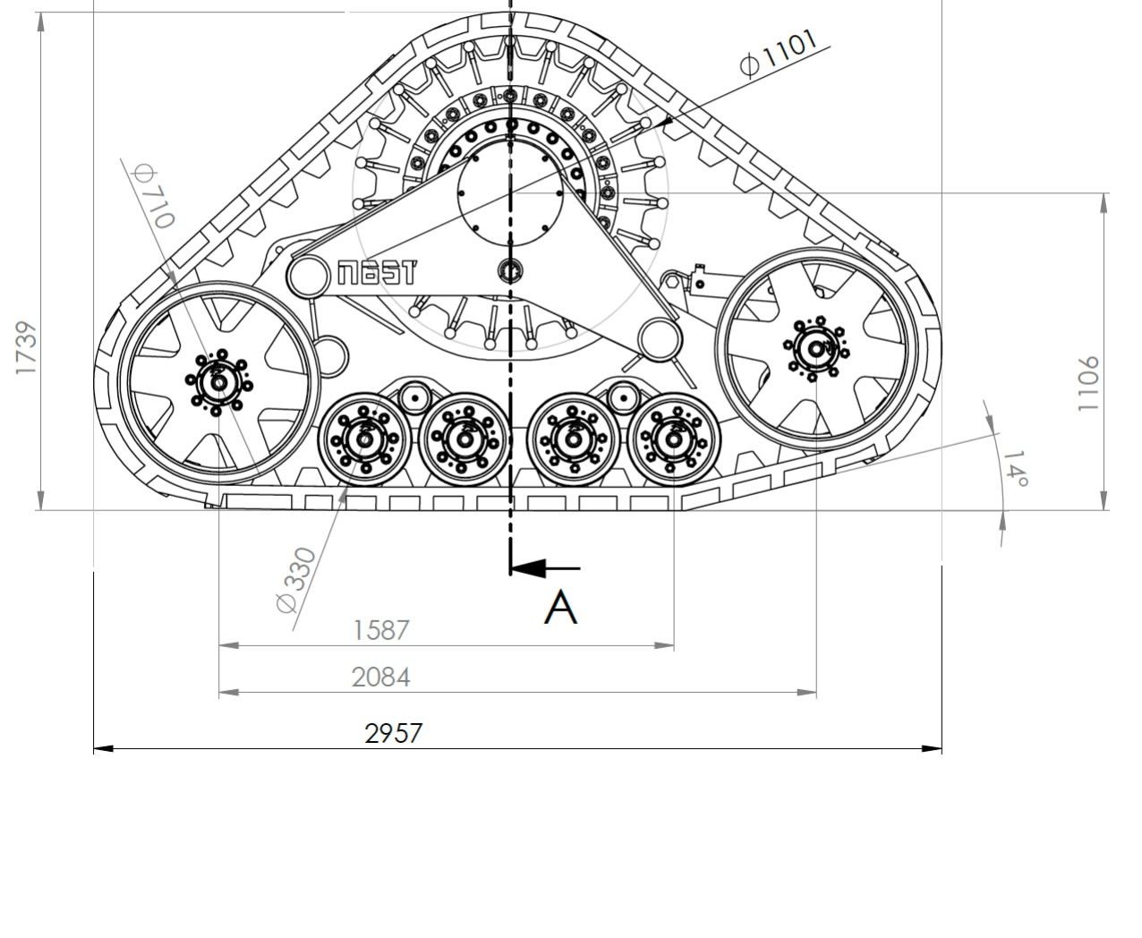 - N° di unità cingolate per macchina: 4 unità (un'unità per ogni mozzo motore dell'asse)