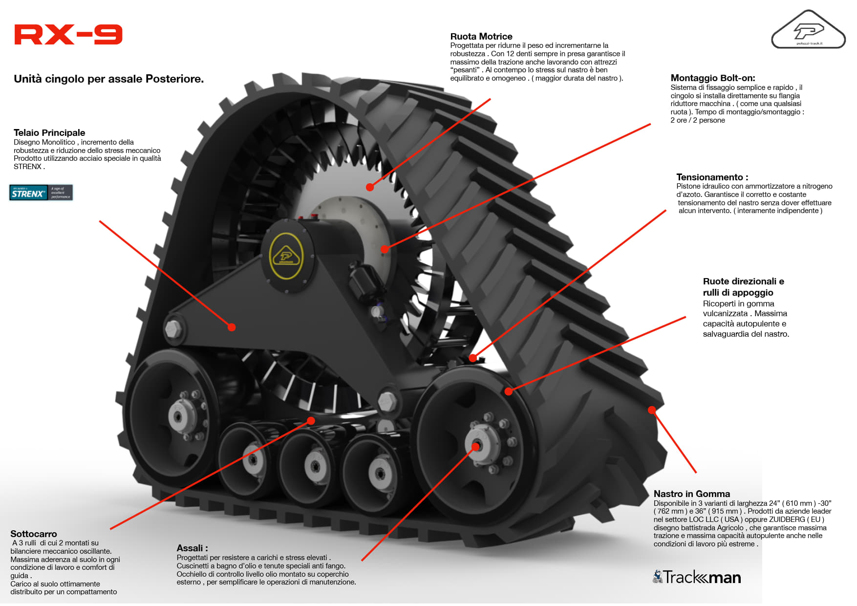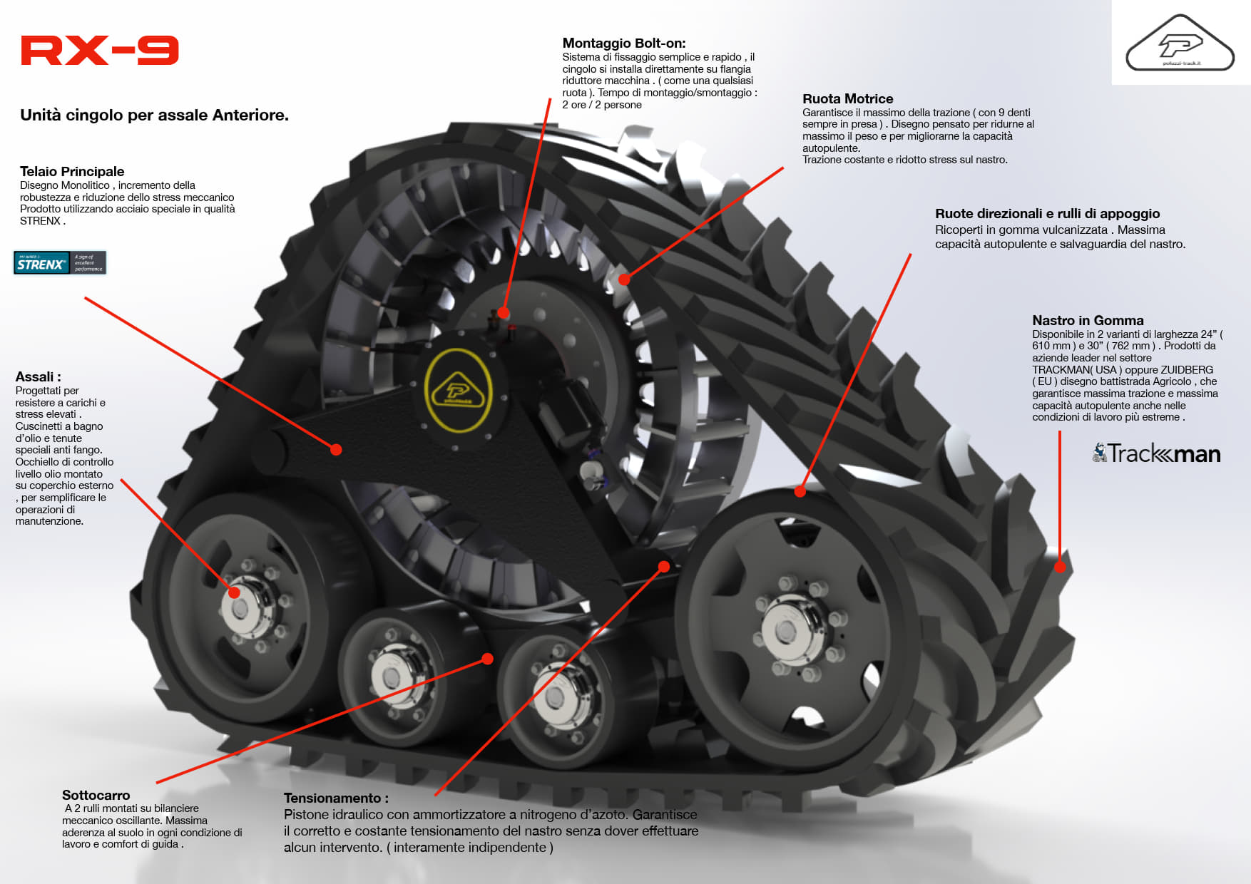 Progettato per convertire in modo semplice e rapido l’intera macchina da ruote a cingoli, manutenzione ridotta al minimo e prestazioni senza euguali.