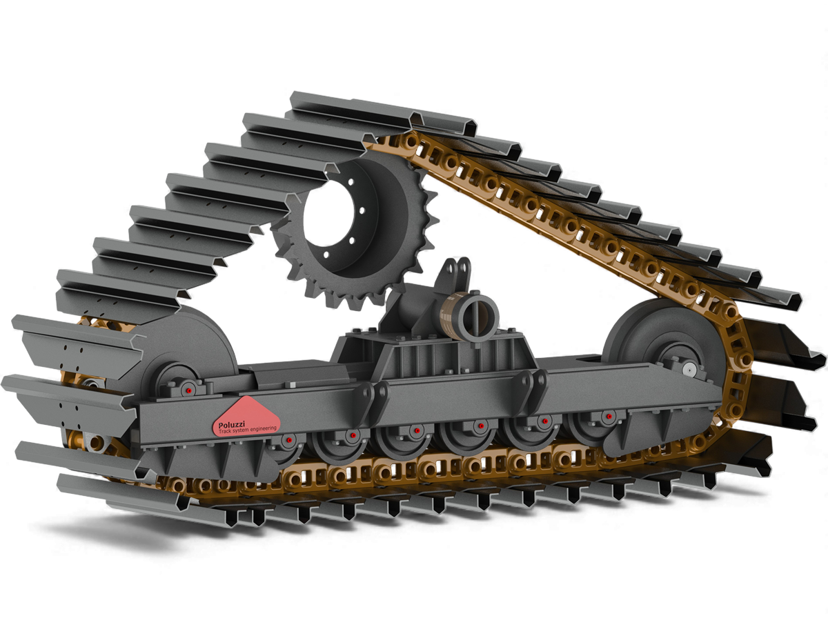 STD900R6 = CINGOLI IN FERRO A 6 RULLI CON PATTINI IN ACCIAIO/GOMMA 900 MM LARGHEZZA