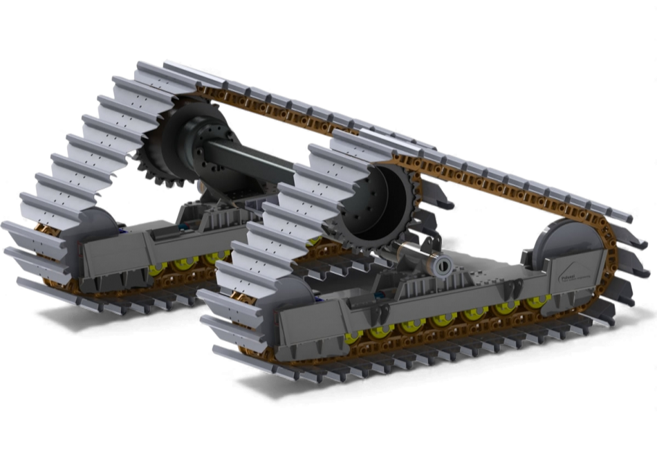 STD900R7-ST = CINGOLI IN FERRO A 7 RULLI CON PATTINI IN ACCIAIO DA 900 MM DI LARGHEZZA