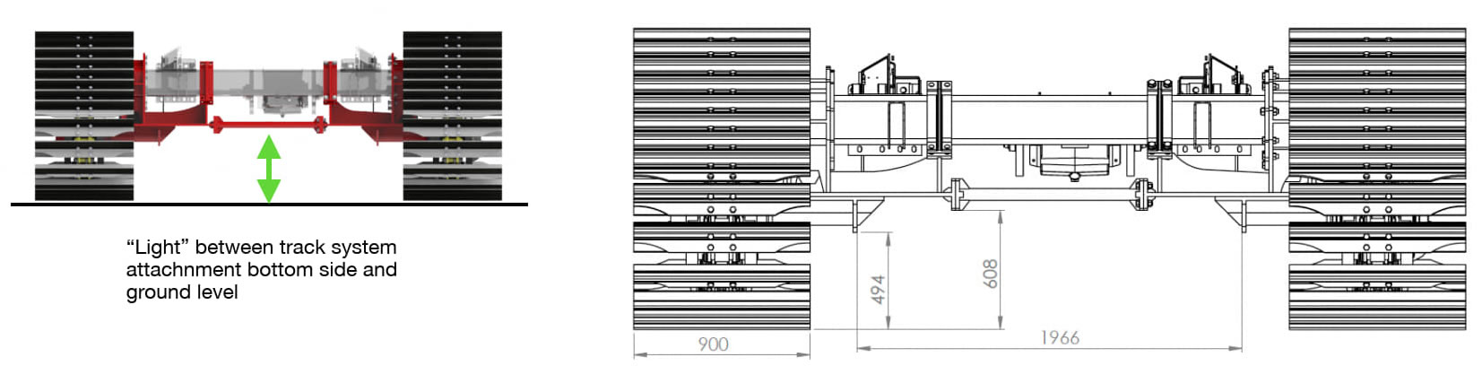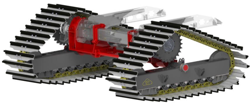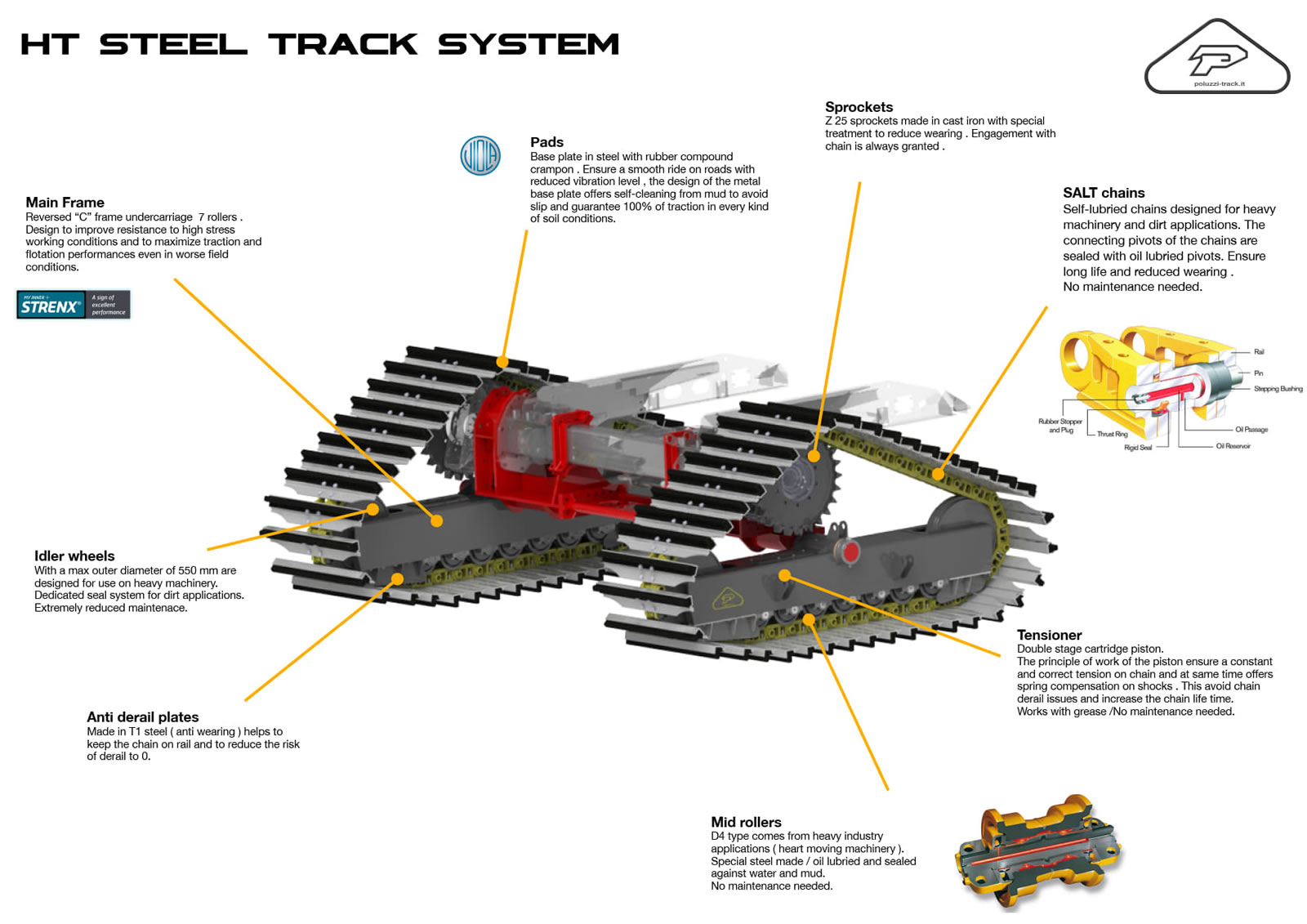 HT900-R8 = CINGOLI IN FERRO A 8 RULLI CON PATTINI IN ACCIAIO/GOMMA DA 900 MM DI LARGHEZZA