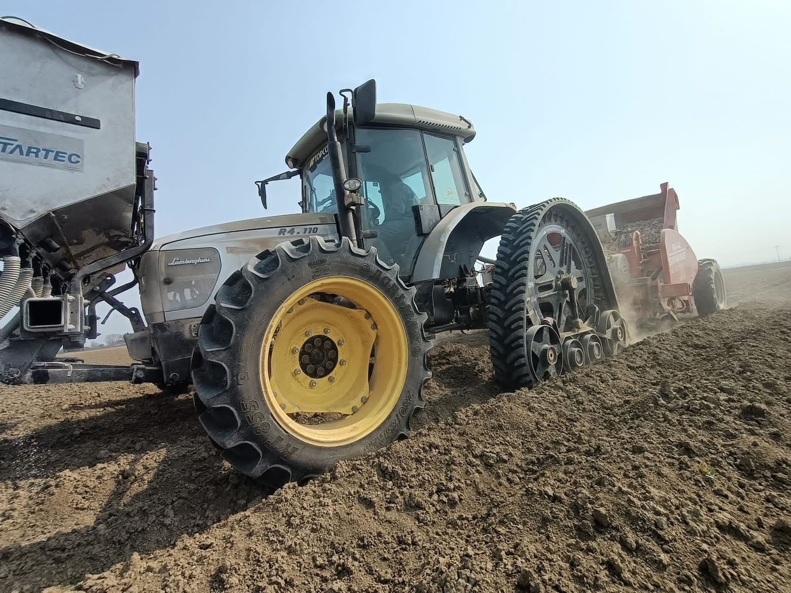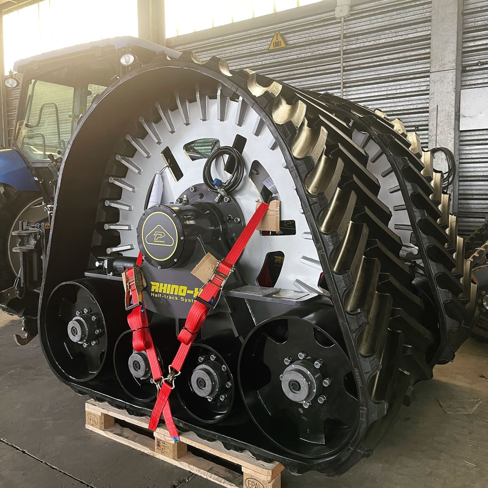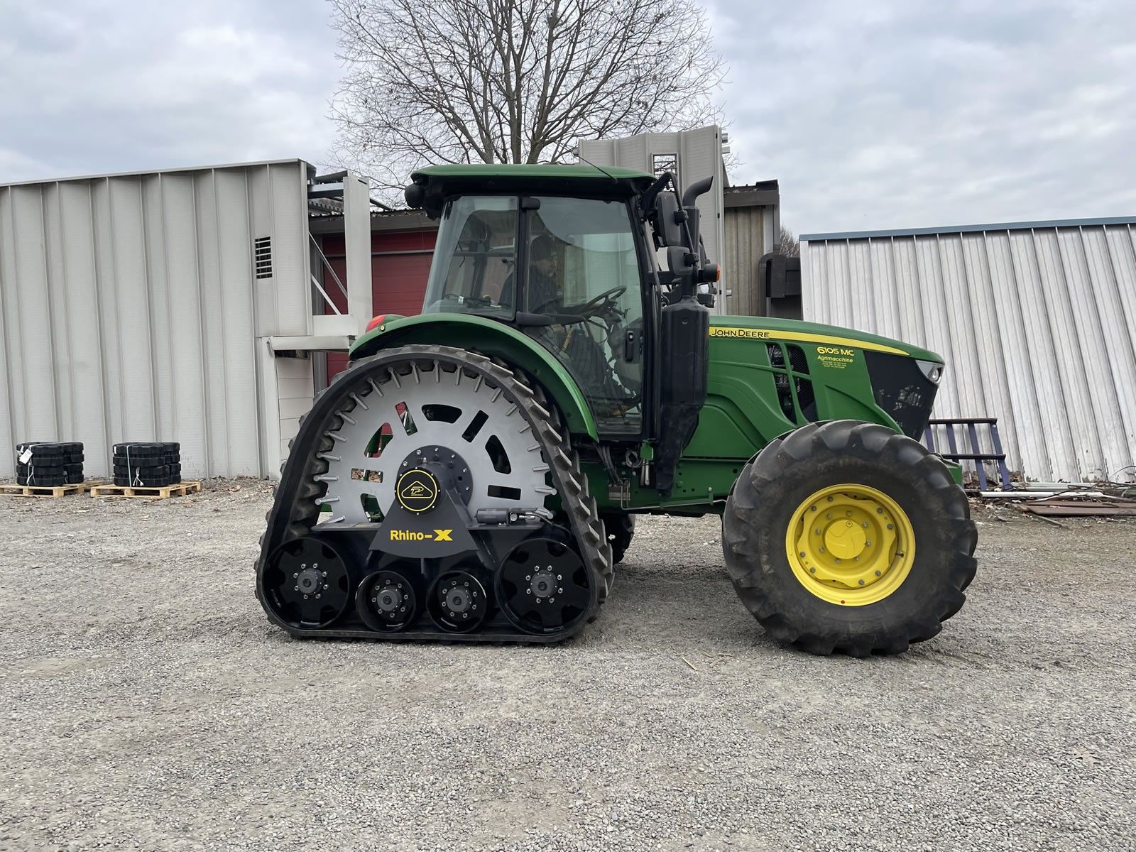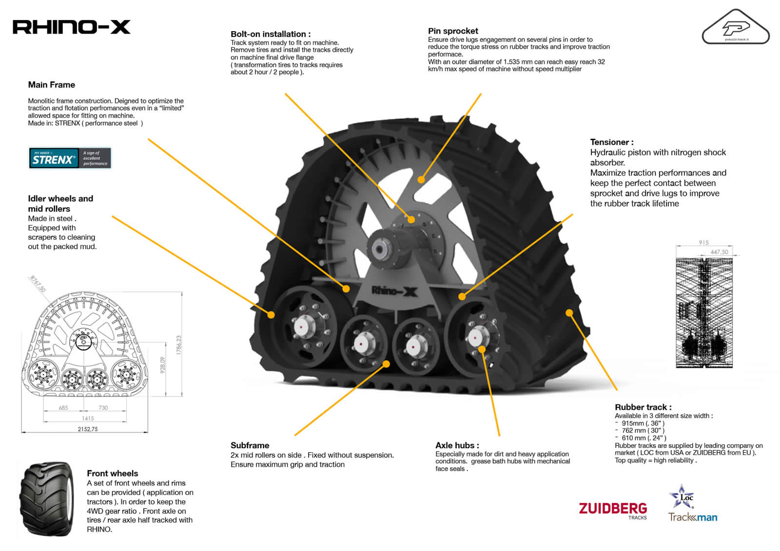 Pneumatici e cerchi anteriori (applicazione su trattore): Forniti su richiesta del cliente. (prezzo non incluso nel costo del kit cingoli)